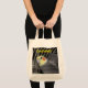 Uma foto de uma Cockatiel brilhante e colorida que está em um Saco de Tote da Grocery. Com amarelo brilhante e vermelho.