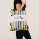 As faixas verticais são uma das doze designs da minha coleção de sacos de tote "Busy Bee". Este design apresenta listras amarelas, brancas e pretas, em ambos os lados, deste saco de tote All-Over-Impressão. Cada design tem uma banda branca, com texto que diz, "Abelha Ocupada" e arte de abelhas. Você pode personalizar o texto. Essas bolsas são excelentes para tarefas, compras, viagem e fazem presentes de excelente.