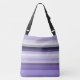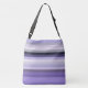 Esta bela sacola de tote de corpo cruzado é mostrada em uma impressão de listras roxas. Tamanho Grande Personalize este item ou comprar como está.