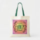 Presente, presente, seja como for, esta bolsa é para a pessoa que é deficiente em habilidades de embrulho de presente. Aqui está uma bolsa de presente reutilizável para dar presentes. O fundo da imagem é um arco-íris redondo com cores de centro a extremo e verde, amarelo, laranja, vermelho, rosa e roxo. O trabalho "presente" é grande no centro e em cada canto em cinco fontes diferentes. A palavra "presente" é exibida em duas fontes diferentes, acima e abaixo do "presente" principal.