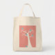 Cinco adoráveis pássaros azuis andam em volta de uma árvore branca contra um fundo rosa neste saco reutilizável! Bonita e amiga do ambiente!