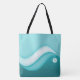 Divertimento no sol e no mar! Associe ou encalhe o bolsa personalizado com seu próprio monograma inicial. Design azul da onda personalizado para o verão.