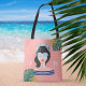 Mostre o seu estilo único com o nosso design de na moda para tote de bolsa expressivo perfeito para uso diário ou para levar com você à praia. A design apresenta nossa beleza retrorística impressa à mão, beleza de praia, palmeiras tropicais folhas de tote. Pinks de pincel, e padrão de bolinhas adiciona um floco de na moda a esta bolsa de tote estilo California. "To The Beach" é desenhado em uma letra de na moda e embutido nos óculos de sol na moda. O verso apresenta um marinho em negrito e um fundo de faixa branca. Todas as ilustrações contidas neste design de saco de totas tropicais de beleza de praia são obras de arte originais desenhadas à mão pela Moodthology. Personalizado com suas iniciais.