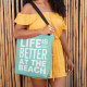 Nossa bolsa de tota de tartaruga-de-verão apresenta "A vida é melhor na praia" na tipografia moderna de blocos brancos, dimensionada para uma perfeita declaração de verão.