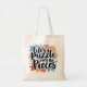 Saco de na moda mostrando uma tipografia divertida de quebra-cabeça, "A vida é um Quebra-cabeça, eu Carregar as Peças." Perfeito para os entusiastas do quebra-cabeça, este carrinho único é funcional e moderno.