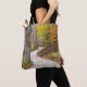 Esta bolsa de tote apresenta uma estrada de outono através da floresta e uma mensagem inspiradora para lembrar às pessoas que não devem ser desencorajadas e que, apesar dos seus reveses, a vida é uma aventura empolgante.