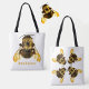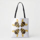 Esse saco de cruzamentos apresenta abelhas, amarelas e pretas com corpos peludos gordos, sobre fundo branco. Há quatro mamangabas que se assemelham a uma flor de um lado e um grande mamangabo no outro.