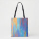 Pincéis acrílicos pintados grosseiramente em azul, turquesa, amarelo e laranja.