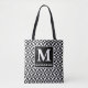 serif clássico personalizado monograma preto e abstrato branco, com padrão em toda a mala impressão tote
