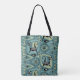Minha ilustração vetorial original de gatos abstrato, cubos, estrelas, bumerangues, lozenges, e muito mais, em turquesa, verde, cinza e preto em azul de cadete.
