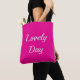 A cor cor rosa-claro é apresentada juntamente com uma letra de script "Lovely Day".
