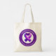 A tote bag to help spread awareness for Epilepsy featuring a purple awareness ribbon and the text, "Advocate. Educate. Empower.."