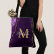 Esta bolsa apresenta um fundo de mármore agamado elegante e glamouroso com detalhes geodésicos de gemstone e sotaques dourados falsos. O monograma combina o guião manuscrito e as fontes sans serif modernas para um aspecto elegante e sofisticado. Isso fará o presente ideal, pois ele pode ser personalizado com um nome e uma inicial. As matizes roxas profundas o tornam perfeito para outono e inverno.