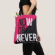Um design de tipografia vibrante e moderna, com a frase motivacional "Agora ou Nunca." O esquema de cores dividido de rosa quente e preto enfatiza urgência e determinação, fazer perfeito para roupa, posters ou acessórios que inspiram ação e ambição.