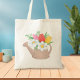 A rega do jardim pode cheio de flores: margaridas, tulipas e hálito de bebê. A lata de água tem um pequeno coração pintado no fundo. O texto é editável.