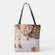 Um cavalo castanho claro está dobrando sua cabeça em direção a um coelho no chão. Como se fossem amigos e conversassem uns com os outros. Um jardim de fazenda no inverno com neve. Idiota de país adequado! Principais cores: branco e castanho.