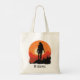 Fazendo backpacking no Sunset Design Tote Bag com texto personalizável.