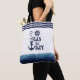 Saco de tota personalizado náutico ou costeiro com um design de tipografia inspiracional e motivacional intitulado SEAS O DIA com uma âncora, roda do navio, ondas de aquarela e listras em azul e branco marinho. Personalize com um nome, monograma, nome do barco ou outro texto personalizado. AJUDA: para obter assistência com a modificação/personalização do design ou a transferência do design para outro produto, entre em contato com o designer ANTES DE ENCOMENDAR por meio do Zazzle Chat ou makeitaboutyoustore@gmail.com.