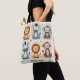 Essa adorável bolsa personalizada apresenta uma encantadora coleção de rabiscos com tema animal esboçados com leões, zebras e macacos. Ele é projetado com linhas suaves e arredondadas e fundos pastéis em verde-menta, rosa-bebê, azul-pó e amarelo-claro.