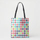 Esta imagem exibe um padrão de diamante colorido, repetindo as cores alternadas — roxo profundo, magenta, laranja, amarelo e verde-oliva — colocado sobre um fundo branco. Os diamantes são arranjados numa diagonal, em forma de grelha, criando um ressalto visual impressionante que lembra o harlequin clássico ou os designs têxteis antigos