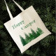 Feliz aniversário de camper com árvores florestais em vários tons de verde