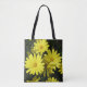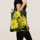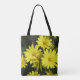 Margaridas amarelas. Três grandes flores amarelas com centros laranja, contra um fundo de folhas verde-escuras. Igual em ambos os lados.