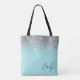 Aqua Azul Teal Prata Brilho Monograma Bolsa de Livros. Esta Bolsa de Livros pode ser personalizada para incluir seu inicial e primeiro nome e dada como presente para o Natal, Aniversário de Sweet 16, Chá de Noiva ou Casamento.