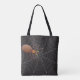 Uma aranha marrom em sua teia de aranha. Este design parece realmente eficaz nesta Tote Bag