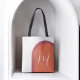 Assim, na moda e sofisticado, este moderno estilo de design de saco de tote tem sua própria marca pessoal, exibindo seu grande monograma inicial em letra de roteiro manuscrito contemporâneo. Blocos coloridos em uma paleta colorida em negrito de coral brilhante e rosa magenta sobre um fundo branco de pomba dão uma aparência elegante a esse design personalizado. Tão útil para a escola, escritório, trabalho correndo, viagem e muito mais, você vai querer carregar em todo lugar! Faz um presente de excelente para qualquer mulher ou menina na sua lista de comprados.