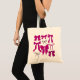 Saco de cochete e de tota girada com ilustração manual de arcos magenta.