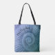Um bolsa único e na moda com uma renderização artística de um fóssil espiral de amonite em purais e verdes de lavanda. Personalize com seu nome ou outro texto.