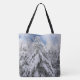 A neve pesada pesa sobre os arbustos de pequenas árvores verdes e verdes nesta foto da paisagem vitoriosa tirada por Richard H. Fay.
