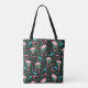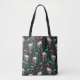Este bonito, original toda sobre - a sacola do impressão tem um teste padrão cor-de-rosa do flamingo que seja feito no estilo retro do art deco. Os flamingos bonito descansam contra um fundo que inclua as frondas da samambaia em cores corajosas e as formas retangulares geométricas nas máscaras da cerceta esverdeiem o azul de turquesa de |, tudo em um contexto do preto.