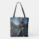 Um robô humanoide com olhos azuis luminosos ajoelha-se num caminho que leva a um templo antigo, combinando tecnologia com arquitetura histórica. O intricado design do robô e o circuito exposto contrastam de forma impressionante com o pano de fundo natural da paisagem. As estrelas da noite brilham suavemente no céu, melhorando a atmosfera mística da cena.