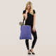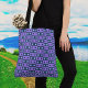Saco Ombro Grande em uma Grade de quadrados alternados, cada um contendo uma forma irregular em uma matiz contrastante. Roxo e azul.