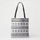 Formas geométricas de arte de rabiscos aztec, de cor branca e preta, com padrão de repetição sem descontinuidades. Design de superfície de textura de estilo Boho realçado com Arte tribal preta. Experimente esta bolsa de tote e partilhe os seus comentários