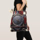 o trem do vintage no estilo do punk do vapor em cores vermelhas e azuis com rodas, janelas, nariz, loucos - e - os parafusos, metal soa, fachada vermelha do metal, e fachada azul cinzenta e olha como um brinquedo. fotografia de cor da parte dianteira de um trem antigo do vapor em cores silenciado metálicas lisas nos vermelhos e nos azuis.