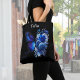 Bolsa Tote Azul na borboleta Floral Preta Personalizada