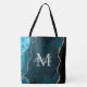 Esta bolsa apresenta um fundo de mármore agamado elegante e glamouroso com detalhes geodóricos de gemstone e sotaques falso de brilho prateado. O monograma combina o guião manuscrito e as fontes sans serif modernas para um aspecto elegante e sofisticado. Isso fará o presente ideal, pois ele pode ser personalizado com um nome e uma inicial. As matizes azuis profundas o tornam perfeito para outono e inverno.