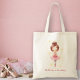 Essa bolsa de tote adorável seria perfeita para uma pequena bailarina carregar suas roupas e calçados balés para suas aulas. A design apresenta uma bela bailarina com estrelas e cinzas atrás dela e o texto, "Ballerina no fazer" abaixo da imagem de um lado, e o mesmo design, mas com um nome em vez do texto, do outro lado. O texto é personalizável e faria um presente personalizado de excelente.