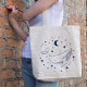 Ilustração de arte de linha de uma baleia sobre um fundo de estrelas e uma lua.
