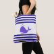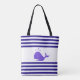 Bela Baleia em Tote Bag azul e branca listrada.