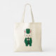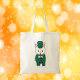 Você gosta de sacos de tote fofos? Esta bolsa de tote apresenta um coelho branco tocando clarinete enquanto veste um uniforme de banda verde e dourado.