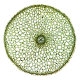Microscopia Slide Transverse, Root Diameter 6.2 mm Esta fotografia mostra uma seção transversal através da raiz de uma planta de erva que vive em zonas úmidas e forma enormes bancos de juncos. Conhecidos como Pavilhão Doce, formam um espigão coberto por pequenas flores e seus caules e folhas são enchidos de bolsas de ar que permitem que o oxigênio se difunda até as raízes e caules submersos sob a água. Quando cortadas, as folhas cedem um aroma agradável, doce e assim foram usadas como cobertura de chão em tempos medievais.