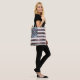 Faça uma declaração de moda com um saco de tote na moda legal para 4 de julho ou qualquer dia. Trendy Patriotic USA flag em vermelho azul azul brilha. Usamos a foto de faíscas e não de reluzentes.