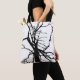 Esta bolsa de tote apresenta um padrão de abstrato artístico, preto e branco do topo de uma tulipa no inverno com ramos nu na silhueta.