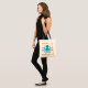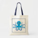 Saco de tote mostrado em natural com tiras azuis marinhos com uma imagem de polvo azul giro. Personalize este saco ou comprar como está.