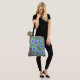 Saco de tecido floral de cinza para coisas. Saco de presente de viagem, escritório, mercado, mercearia ou tecido de designer ideal. Padrão de flores em azul e roxo nas cinzas. O fundo da cinza clara pode ser mudado para sua cor favorita. O texto também pode ser personalizado ou pode ser removido.