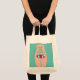 A bolsa de protesto Pro Choice apresenta a ilustração do corpo da mulher com flores e o texto "bane nossos corpos" em fundo aqua.