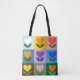 Brigue seu dia com este saco de tote floral colorido! Apresentando um esquema ousado 3x3 de flores estilizadas em matizes arco-íris, este design é perfeito para as tarefas cotidianas, comprando ou como um presente alegre. Um imperativo para amantes de cores e ventiladores de design!